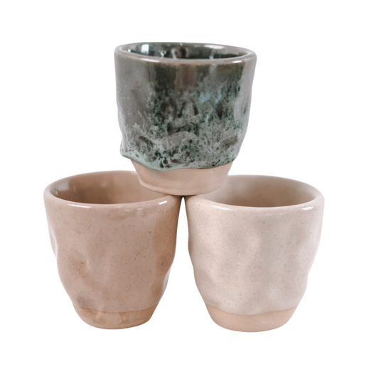 Each piece is handmade with care and finished in a reactive glaze that flows freely — creating organic patterns and soft transitions that make every cup one of a kind. From your first morning espresso to a slow afternoon tea, these ceramics bring warmth, ease, and effortless beauty to your daily rituals.