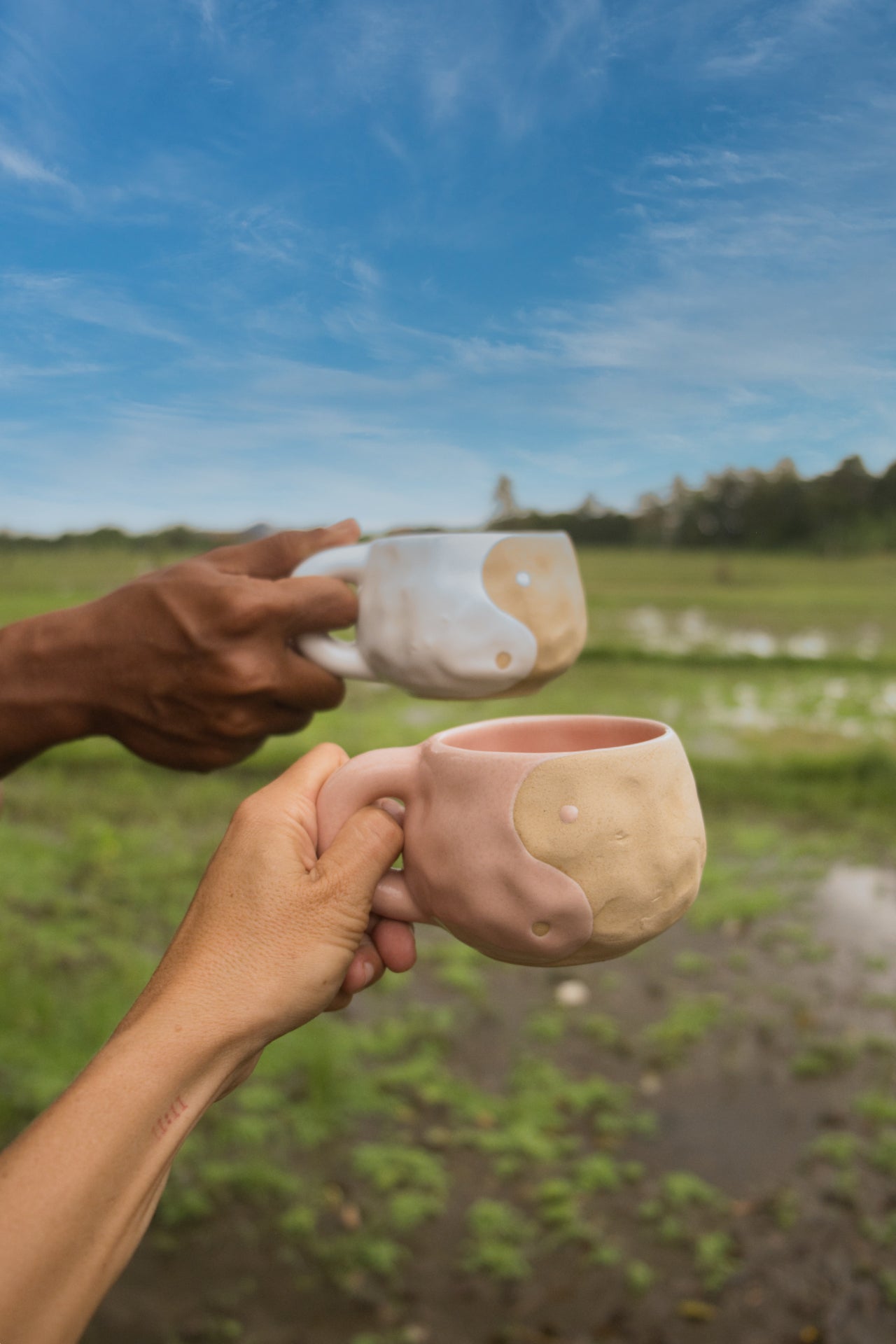 Balance your moments with our Yin & Yang Ceramic Set, a handcrafted duo designed to bring calm and harmony to your daily rituals. This set features two perfectly paired ceramic cups — one in classic white, the other in soft blush pink — representing the gentle dance between opposites. Each cup holds approximately 250ml, ideal for coffee, tea, or any moment of pause.